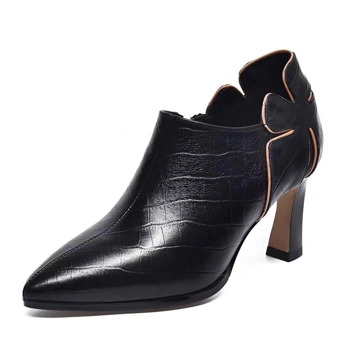 รองเท้าส้นสูง ทรงเกือกม้า หนังวัวสองชั้น ส้นหนา สำหรับผู้หญิง